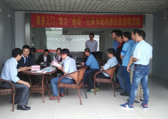 臨近年底,產(chǎn)能的沖刺又成為各部門的首要任務(wù),在繁忙的工作之余,為解決新進員工社??せ顔栴}等后顧之憂,經(jīng)與鎮(zhèn)社保局、廣發(fā)銀行溝通,邀請其于2017年11月14日上門為員工進行社??せ?、咨詢等服務(wù)。