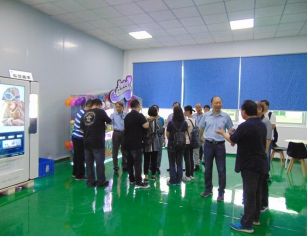 會(huì)后徐常董、吳常董及各運(yùn)營(yíng)總監(jiān)一起陪同各來訪領(lǐng)導(dǎo)到生產(chǎn)現(xiàn)場(chǎng)參觀考察;現(xiàn)場(chǎng)了解制造沖壓自動(dòng)化機(jī)械手運(yùn)用情況,及量測(cè)實(shí)驗(yàn)室精密量測(cè)設(shè)備的使用情況;隨后,又參觀了販賣機(jī)、糖果機(jī)、咖啡機(jī)生產(chǎn)車間,從中整體了解了自動(dòng)售賣系列產(chǎn)品的運(yùn)行及后期維護(hù)情況,蔡會(huì)長(zhǎng)及各企領(lǐng)導(dǎo)還現(xiàn)場(chǎng)體驗(yàn)試用咖啡機(jī)及糖果機(jī)的效果。